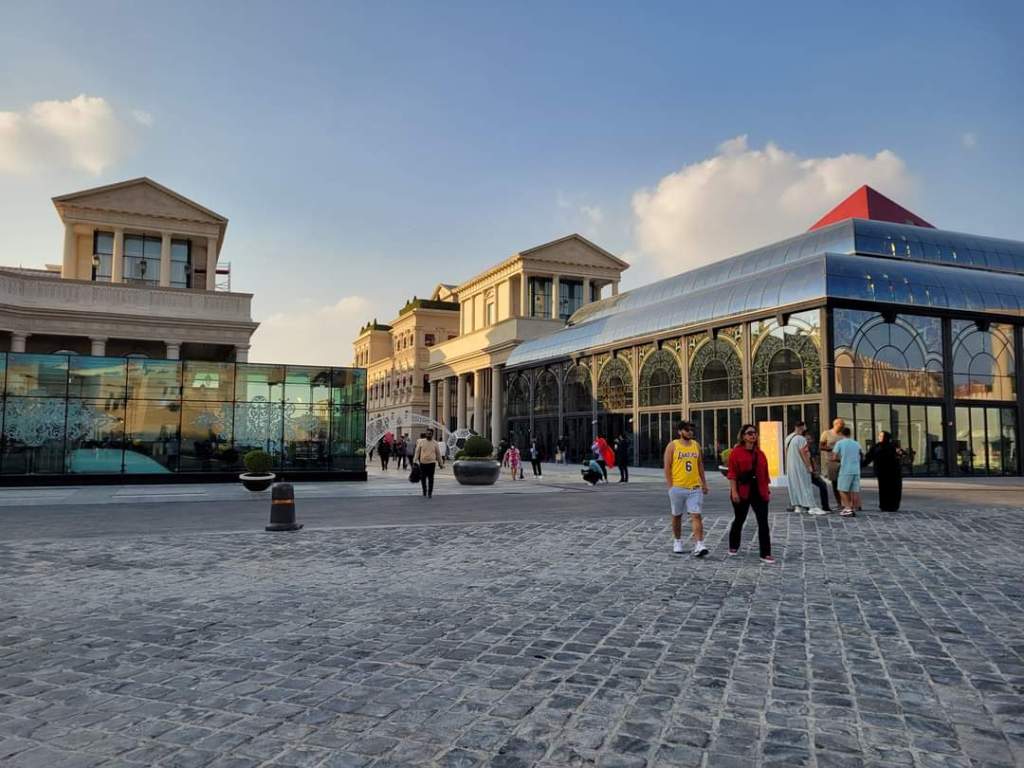 We made our way again to Galeries Lafayette and walked past more Qatari traditionally-designed buildings with eye-catching art displays. Just past that building, we arrived at the gorgeous Galeries Lafayette plaza and promenade. The European-style buildings looked grand. The promenade was lined with charming alfresco cafes and decorated with eye-catching arc structures with a soccer ball at one end of each arc. The whole area looked and felt elegant and luxurious. We entered one of the buildings just to have a peek inside and visit the restrooms. As expected, we found only luxury items on display for purchase, and the sales staff were all dressed impeccably to serve high-end customers. Based on how my husband and I were dressed, it was clear that we did not fit that profile, and yet, the few sales staff we spoke to were still very friendly and helpful to us. Kudos to the staff!